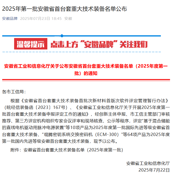 2025年7月22日,我司自主研发的“GD太阳能一体化污水处理设备”成功入选2025年第一批安徽省首台套重大技术装备名单,并被评定为国内先进,这一创新成果标志着我司在绿色环保技术领域取得重大突破。该设备集成了污水净化云智控系统与太阳能动力电极氧化净水装置,实现远程监控与智能调控,显著降低运维成本,并采用新能源技术,有效提高了污水处理效率及环境适应性,为污水治理、生态保护等领域提供了创新解决方案。